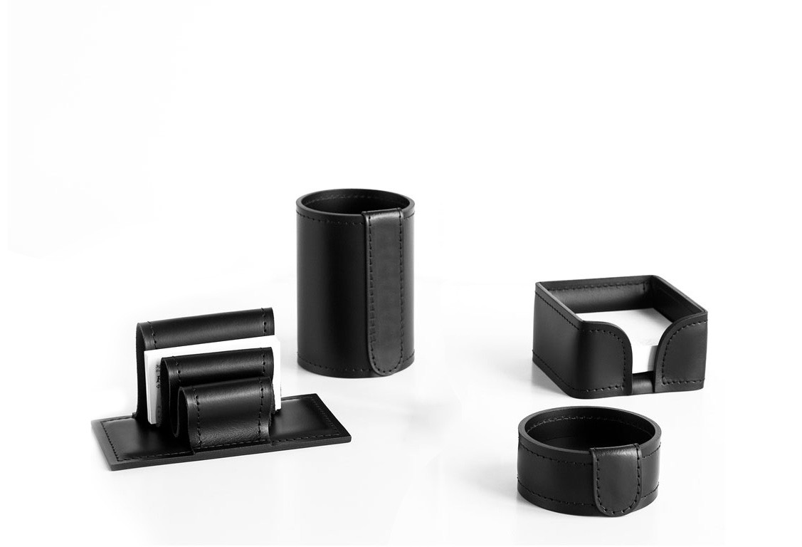 Элитный подарок начальнику, шефу, мужчине, в кабинет из натуральной кожи, накладки на стол и аксессуары. Набор без бювара, цвет Черный